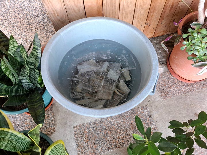 For a couple more days, she will let the fish soak, changing the water until the salt fades and the flesh turns soft again.